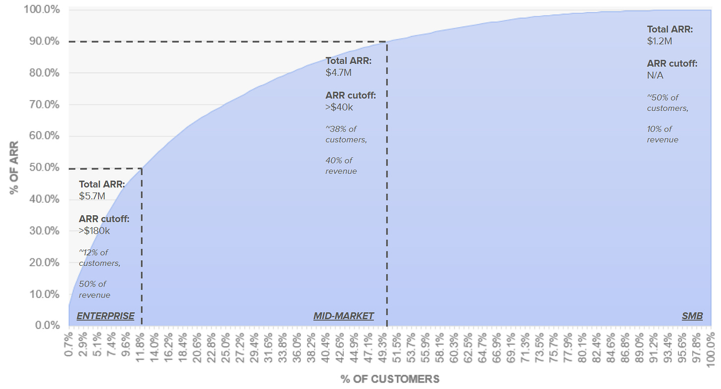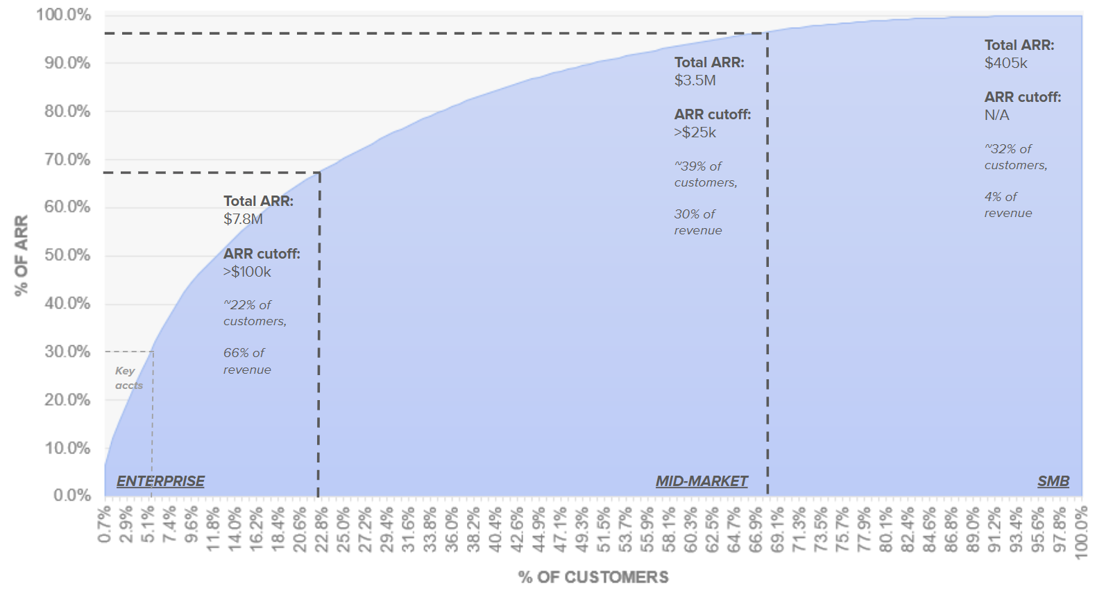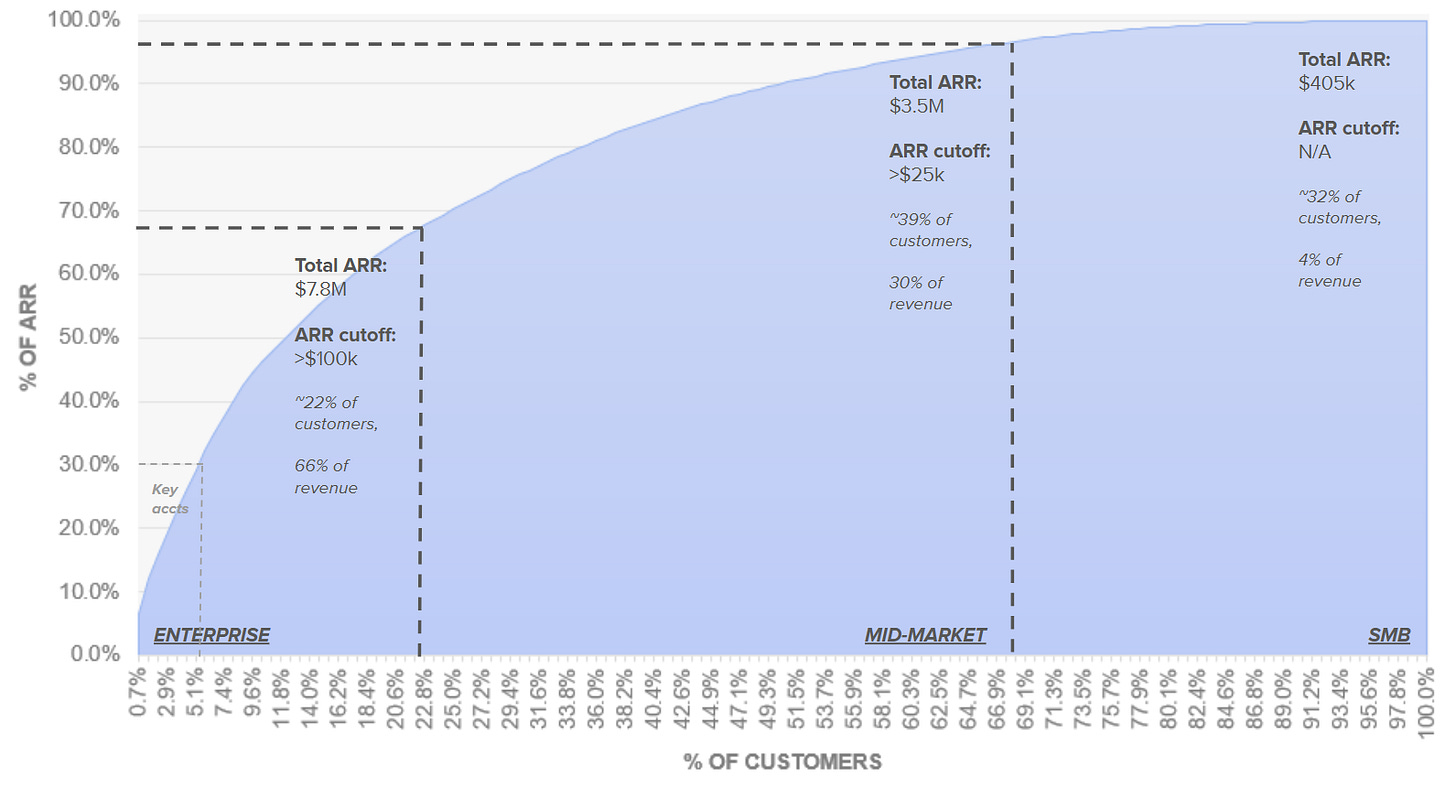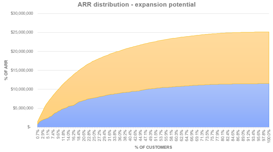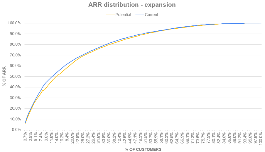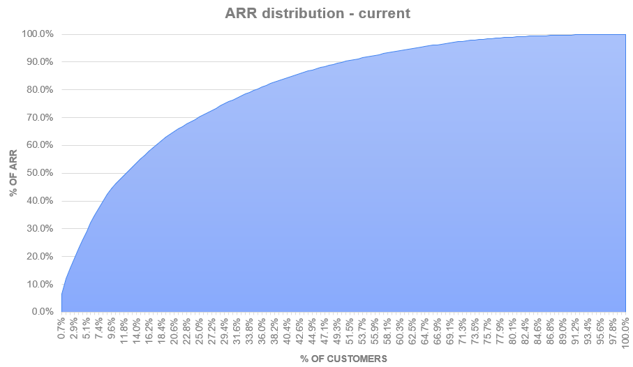 - Plot cumulative % of ARR vs. cumulative % of customers.